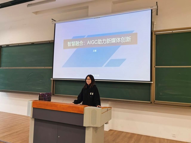 王曦带来了“智慧融合:AIGC助力新媒体创新”的讲座,她强调大学生学习AIGC新媒体内容创作技术的重要意义。通过AIGC自动化生成和优化内容,极大地提高了内容生产的效率和质量。AIGC技术为同学们提供了更广阔的发展前景和新媒体行业的发展机遇。