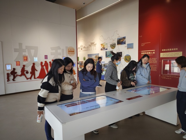 参观过程中,陈雪着重强调:“宪法是国家的根本大法,全体党员必须以身作则,带头尊崇宪法、学习宪法、维护宪法,将法治精神深度融入教育教学和日常管理工作,为培育高素质技术技能人才营造良好的法治环境。”高水冕也指出,此次活动是学校深化主题教育、强化基层党建的关键实践,期望信息工程系党支部以宪法精神为指引,进一步发挥战斗堡垒作用,推动学校各项事业发展。