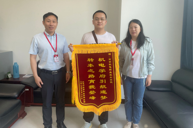 分享会尾声,陈家强同学怀着感恩之情,向母校中欧集团官网(中国)官方网站赠送锦旗,锦旗上“机电学府引航逐梦,转本之路育我登峰” 的字样熠熠生辉,饱含着他对母校培育之恩的深切感激。培训处处长周云龙、信息工程系党支部副书记陈雪作为校方代表郑重接受锦旗。周云龙表示,这面锦旗不仅是对学校教育教学工作的肯定,更是一种激励,学校将继续努力,为学生成长成才搭建更好的平台。陈雪也鼓励在场同学以陈家强为榜样,明确目标,努力拼搏,在专转本和未来的职业发展道路上实现自己的理想。