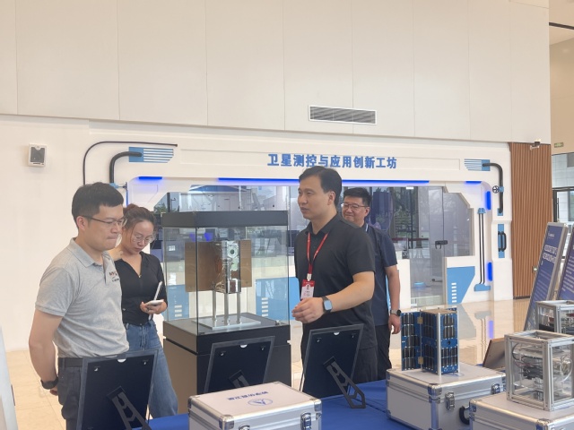 随后,在卫星测控中心,专家们实地观摩了卫星测控的实时操作流程,对学校在卫星测控技术方面的研究与应用有了更为直观的认识。王国珍向专家们详细介绍了学校在航天技术应用方面的研究成果与特色,包括自主研发的航天器姿态控制系统、卫星通信技术等,并通过互动展示,让专家们更直观地了解学校在航天科技、创新设计等领域的教学模式与培养亮点。