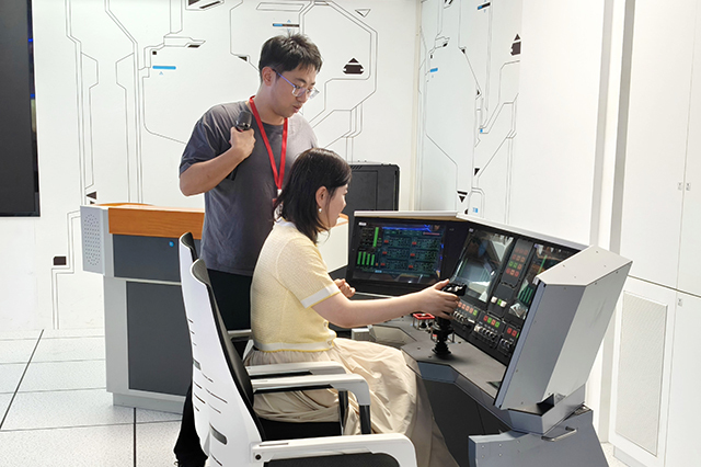 最后,全体参会人员在卫星测控中心中观摩了精密仪器设备与虚拟仿真系统。在黄威的细致讲解下,教师们系统了解了卫星信号接收、数据处理等核心技术环节,还近距离观察了各类精密仪器的工作原理与实际应用场景。教师代表亲身体验了长征火箭发射互动模拟项目,沉浸式感受科研实践的独特魅力。现场观摩不仅丰富了教师们的技术认知,更启发大家从实际科研场景中挖掘专利创新点,为后续推动教学与科研深度融合奠定了坚实基础。