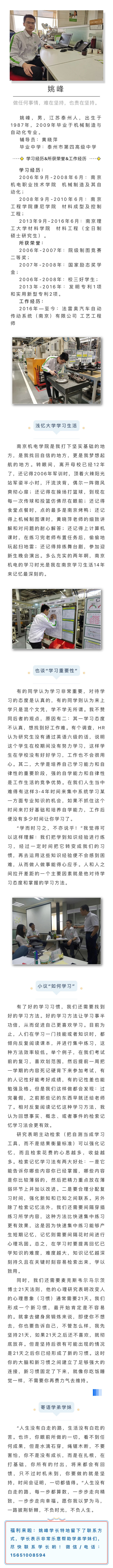 【机电校友】姚峰:做任何事情,难在坚持,也贵在坚持