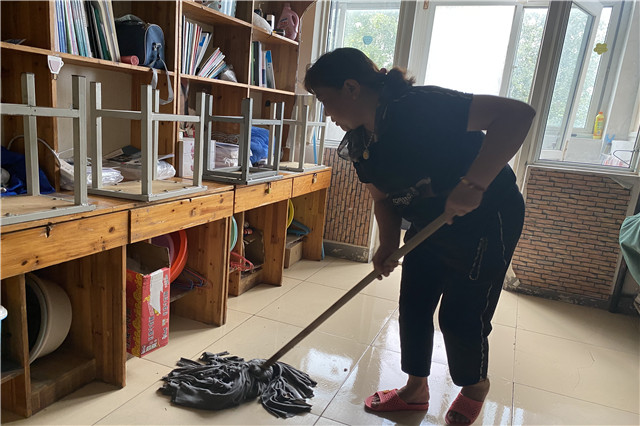 打扫卫生、清理垃圾、摆齐桌椅、冲洗厕所和洗手台......自8月28日起,宿管中心21名员工从早晨5点开始清扫行动,宿管阿姨们握着扫把,低身弯腰,将地板上的垃圾扫进畚斗,一间一间检查寝室环境卫生、开窗通风透气、细心整理归置物品、扫地清理垃圾。虽然南京的天气还是很炎热,但一想到能为学生带来舒适的居住环境,宿管阿姨们都干劲十足。本次宿舍清扫行动将于9月7日前完成。自9月7日开始,宿管中心将对342间学生宿舍进行全封闭紫外线和84消毒处理,确保学生安全入住。
