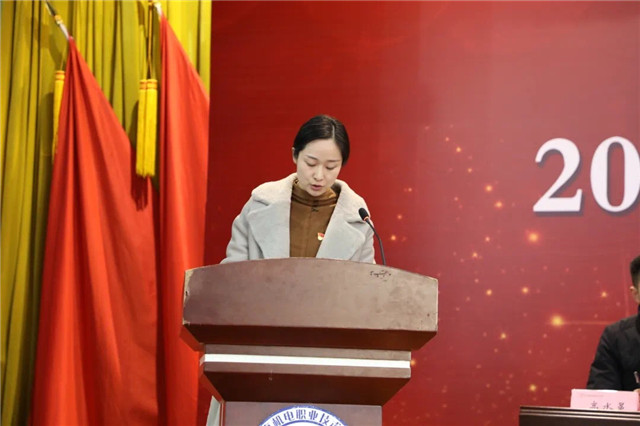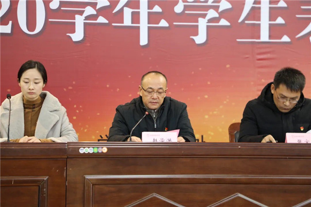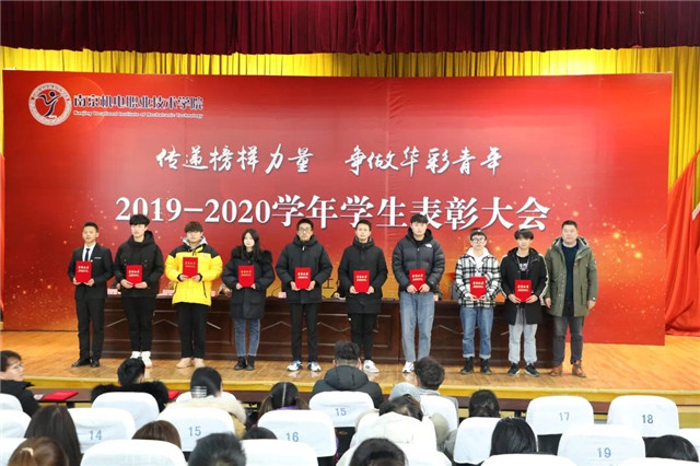 学工处处长张宝中宣读《关于表彰2019-2020学年中欧集团官网(中国)官方网站“文明班级”“三好学生”“优秀学生干部”的决定》。电气193班、会计191班等15个班级被评为文明班级;李小庆、许婉婷等122名同学荣获“三好学生”荣誉称号;罗宏伟、戚彬盛等129名同学荣获“优秀学生干部”荣誉称号。