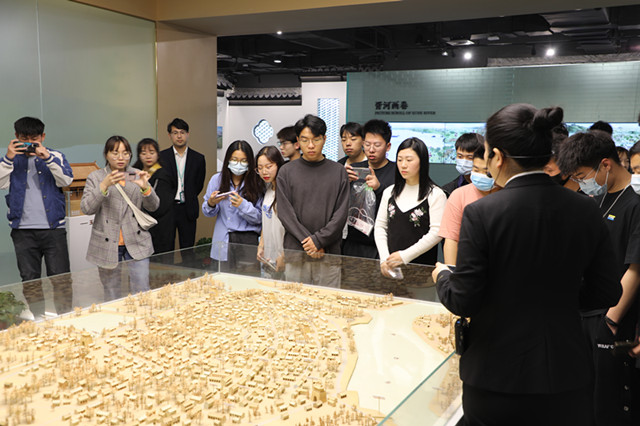 跟随讲解员的脚步,师生参观体验了“序厅”、“记忆——历史名城”、“脉搏——产业智城”、“蓝图——南部副城”、“家园——淳美慢城”、“容颜——生态绿城”六大主题展区,感受高淳的繁华的运河历史和现代乡村振兴之路;了解高淳城市生活,看四季、游景点、尝美食、听方言,品味慢生活,共享淳幸福。