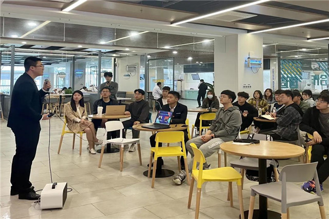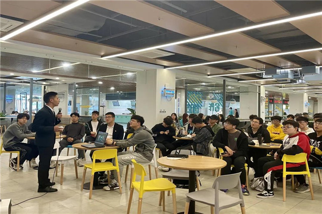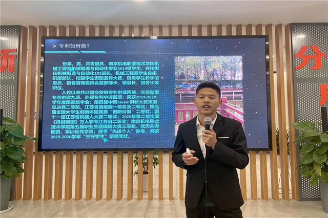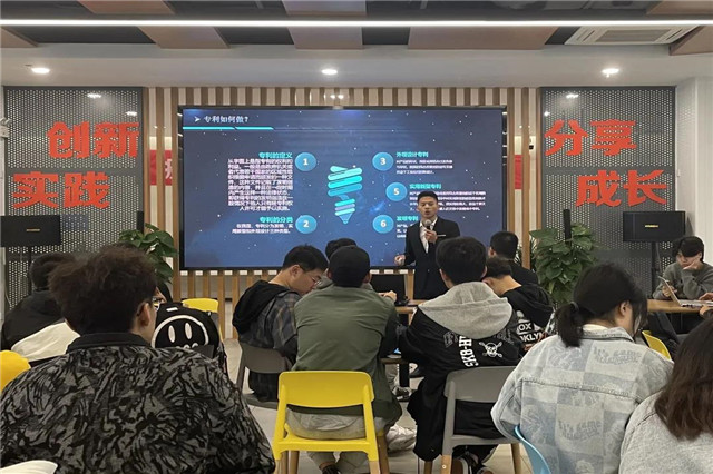 主讲人张弟同学的分享结合个人专利设计的突出表现和我院对创客校园建设的重视,从什么是专利、如何申报专利、专利申报流程、注意事项等方面全方位为同学们进行了梳理,并列举了许多个人创作经历。同时指出,我院作为首家蓝岛创客校园,可以为同学们提供优质资源以及技术指导。最后,他向同学们介绍了国家对于专利的重视,鼓励同学们可以积极参与到创客活动中去。