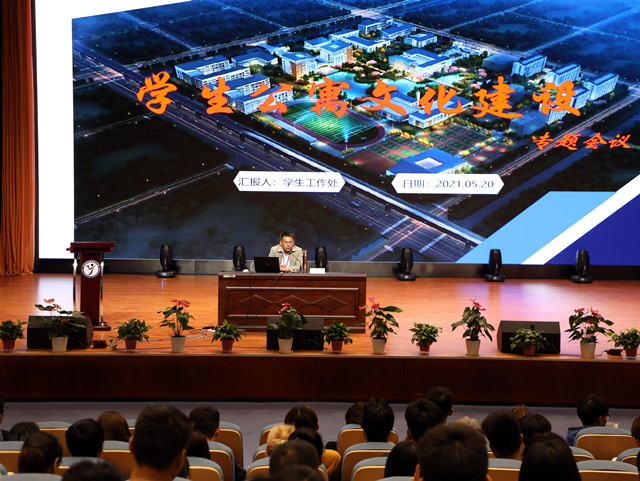为扎实做好学生宿舍疫情防控常态化管理工作,深化三全育人实效,进一步夯实宿舍管理工作,全面提升宿舍文化氛围,营造齐抓共管的风气。2021年5月20日,在学院报告厅召开了学生公寓文化建设专题会议暨主要学生干部意识形态会议,参会人员有我院院系两级学生会主席、生活部长、宿管会、班长、生活委员、楼层长和舍长。