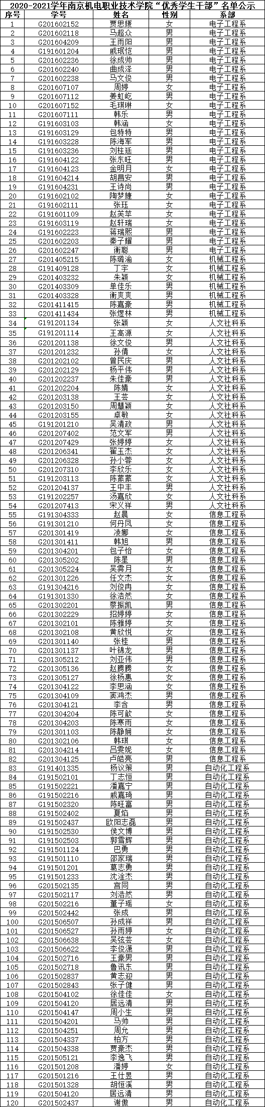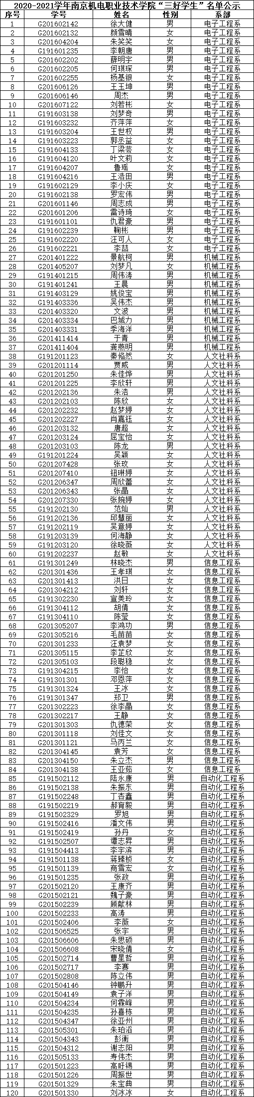 根据《关于评选2020-2021学年“三好学生”、“优秀学生干部”和“文明班级”的通知》规定,经学生本人申请、班级评议,系部审核推荐,学生工作处核准,学校审批,在公平、公正、公开的基础上,拟评选出以下个人和班级为2020-2021学年中欧集团官网(中国)官方网站“三好学生”、“优秀学生干部”、“文明班级”,现将名单公示如下。