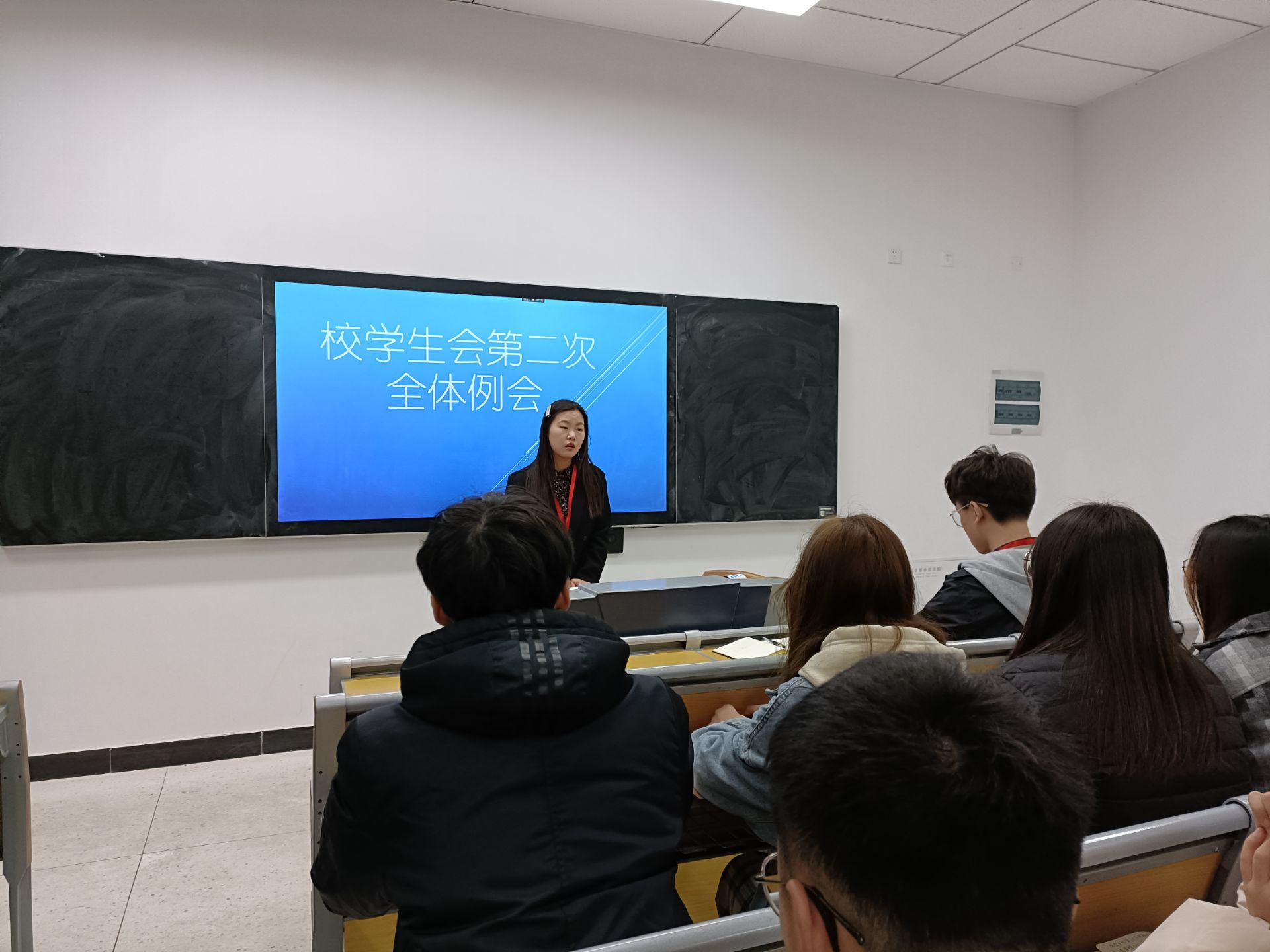 例会伊始,各部门部长针对于近期的工作开展进行了汇报总结。随后,校学生会主席顾得耀先对近期各部门工作开展进行了表扬,接着针对接下来的工作进行了要求,他希望大一学生干事要“眼里有事”,提高积极性,并能够不限于只学习各自部门技能,多学善思,在学生会能够提升自己,有所收获。随后,校学生会副主席潘婷根据前期活动开展总结出的一些问题对在场的学生干部提出要求,例如在日常工作中不得无故缺勤,按时到岗,积极响应工作号召,发挥主动性、积极性,牢记服务学生的初心。校学生会副主席吴佳祺则再次提醒在座的学生会成员,作为学生干部要以学习为主,做好带头表率作用,同时平衡好工作与学习的关系。