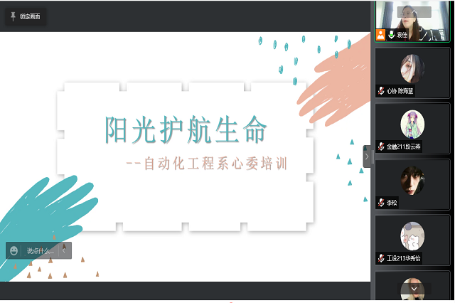 自动化工程系心理辅导员袁佳老师通过和同学们积极互动的方式向同学们讲解心理问题的识别,以及如何自我调节,帮助同学们正确地认识自我,了解自身存在的问题。