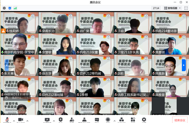 2022年8月12日下午,我校召开暑期学生干部交流会,本次会议采用“线上”形式举行。学生工作处处长张宝中、团委书记唐钰峤、校学生会指导老师钱莉娇、校团委指导老师金慧敏、大学生生活服务与管理中心主任张进宝出席本次会议。新一届院团委和学生会全体成员、各系团总书记和主席团参加了本次会议。