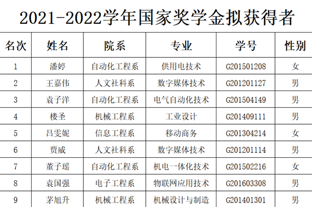 根据《省教育厅关于做好2022年普通高校国家奖学金有关工作的通知》苏教助函〔2022〕9 号、《教育部 财政部关于印发<本专科生国家奖学金评审办法>的通知》教财函〔2019〕105号、《江苏省学生资助资金管理办法》、《江苏省学生资助管理实施细则》文件精神。我校认真落实国家奖学金评审相关细则,各系部通过召开系部国家奖学金评审小组会议,认真贯彻落实国家奖学金评定要求,本着公开、公正、公平的原则,经学生个人申报,班级评议通过,上报系部评议小组,系部对申请学生各项指标、材料进行初审并提出意见,经系部同意,公示完毕,正式上报学校大学生资助管理中心。经学校大学生资助管理中心复审,逐一核实各系部提交国家奖学金候选人材料,核实无误后,上报学校国家奖学金评审领导小组,经学校国家奖学金评审领导小组同意,于2022年10月13日组织召开学校国家奖学金评审会。拟确定九位同学为中欧集团官网(中国)官方网站2021-2022学年国家奖学金获得者。