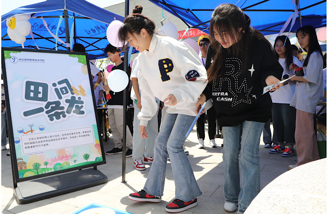 5.25心理广场活动包含了彩绘墙、心情打卡、“飞盘九宫格”“解忧杂货铺”等15项内容。趣味十足的“田间一条龙”“天旋地转”项目、探索自我的“做不被定义的人”“你笑起来真好看”项目、挑战反应能力的“问东答西”“是或不是”项目,吸引了700余名师生参与其中,切实让同学们在参与活动中增长知识、提高素质、享受快乐、收获成长。