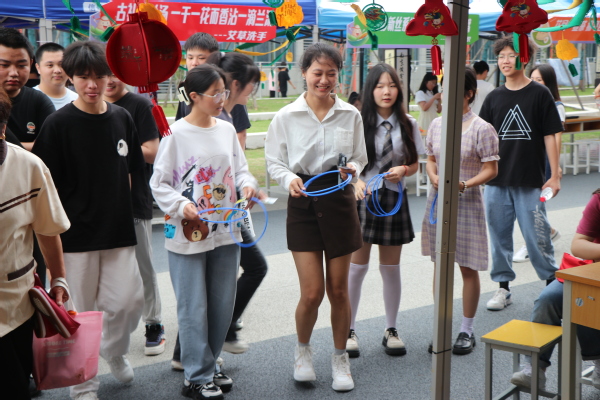 投壶游戏具有上千年的历史传统,是中华民族宝贵的非物质文化遗产。射五毒寓意着“强身健体”,通过射五毒来提醒人们注意防范毒虫,也有无病无灾的美好祝愿。同学们通过投壶、射五毒、套圈等游戏角逐激烈,获得参与端午民俗体验活动的门票。师生们寻找角度,稳住心态,瞄准投射,活动现场气氛热烈浓厚。