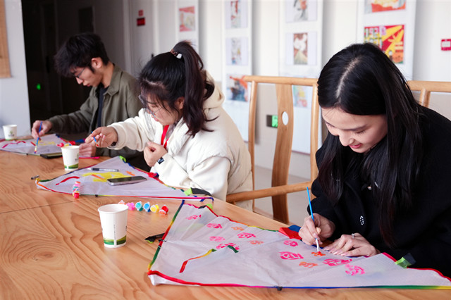 缠花源于明代,盛于清代,是用多色丝线在以纸板或者铜丝扎成的胚架上缠绕出的传统美术品,是国家级非物质文化遗产。在师生们的互相帮助下,指尖流转出春天的花朵。体验着丝线交织在花瓣模型上,见证着花瓣拼凑起一朵灿烂的花。亲手制作属于自己的发簪、发钗。不仅锻炼了动手能力,还有一份独一无二的春日记忆。
