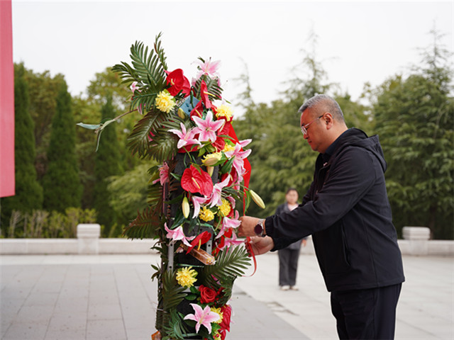 在烈士墓前,张清松和周志刚两位同志为烈士敬献花篮,鞠躬致敬。党委委员、副校长刁爱军同志为烈士整理挽联,师生们手持鲜花,神情肃穆,依次向烈士敬献白色菊花。一朵朵菊花,寄托着对先烈的无限哀思和崇高敬意;一次次鞠躬,表达着对先烈的深深缅怀和无限敬仰。