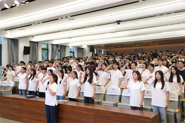 随后,进行新一届学生资助宣传大使集体宣誓仪式,铿锵有力的誓词,表达了他们励志成才、不辱使命、播撒爱心的决心。
