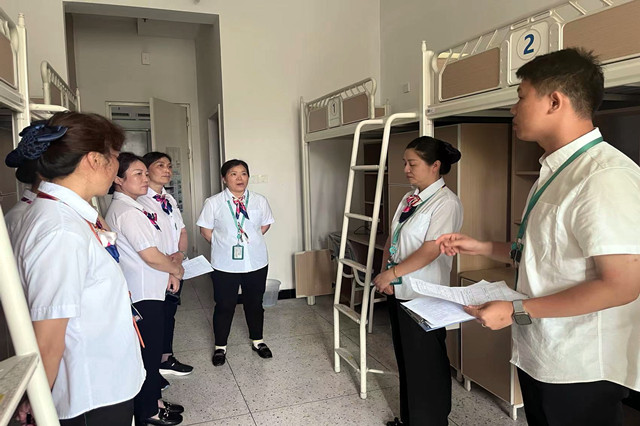 针对退宿场景的培训,宿管老师们分批次进行了实际的模拟操作,在过程中,大家认真仔细地核对学生信息,用心检查宿舍内设施设备的状况,全力确保宿舍卫生状况符合标准,实现资产的完好交接。与此同时,耐心地为同学们解答关于退宿流程以及注意事项的疑问,让同学们能够清晰明了地完成退宿的各项步骤。
