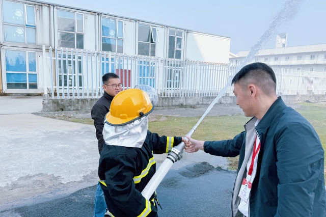 消防水带是微型消防站的重要装备之一,其使用方法及注意事项是本次培训的重点内容。专家首先讲解了消防水带的结构、材质及性能特点,然后详细演示了水带的铺设、连接、充水及喷射等操作流程,在演示过程中强调注意事项。通过消防水带演练,大家分工明确,配合默契,迅速展开行动,展现出了良好的应急响应能力和团队协作精神。