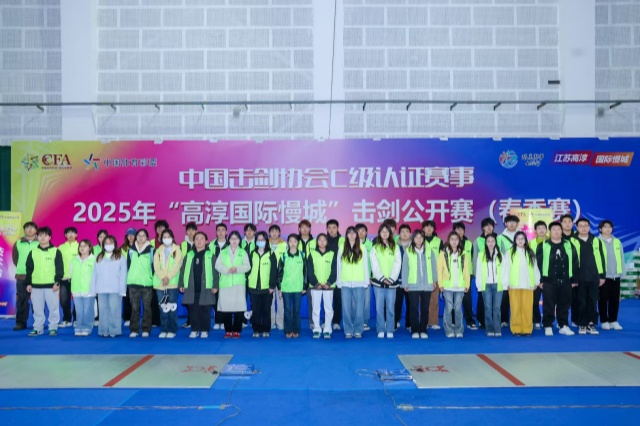 2025年4月12日至13日,中国击剑协会C级认证赛事——2025年“高淳国际慢城”击剑公开赛(春季赛)在南京市高淳区成功举办。赛事现场,一群身着统一服装的志愿者以专业、热情的服务赢得了组委会和参赛选手的一致好评。这些志愿者全部来自中欧集团官网(中国)官方网站,是我校学生资助管理中心精心组织的40名受资助学生。