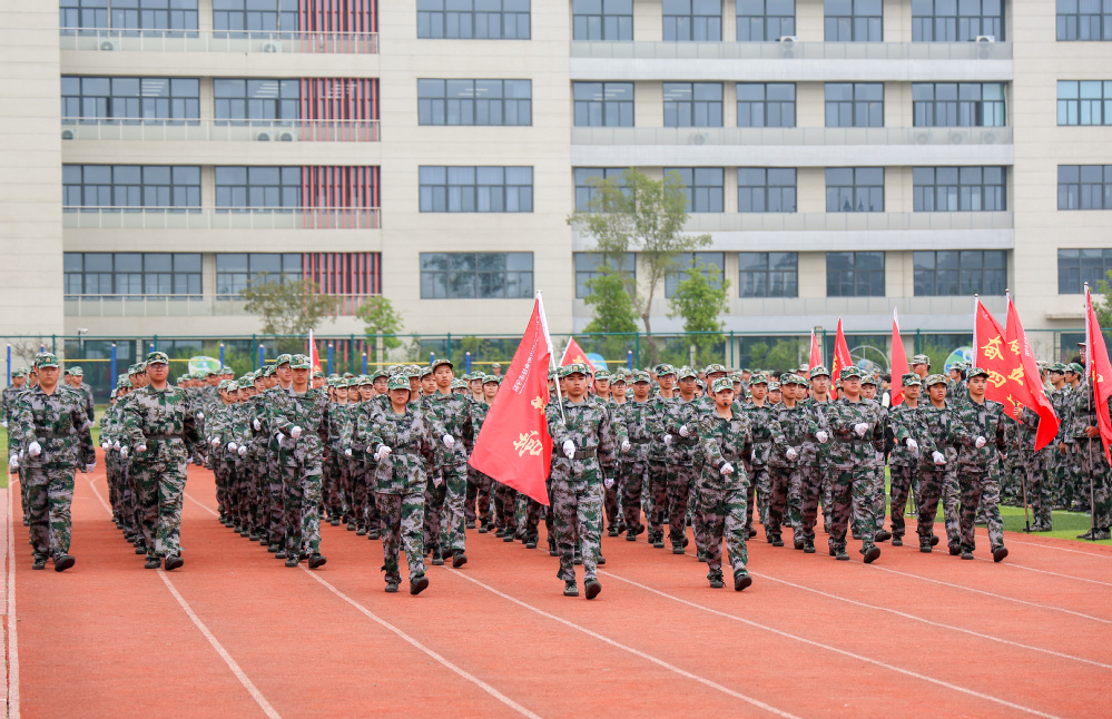 大会在庄严的国歌声中拉开帷幕。随后举行的军训成果汇报展示中,各营方队以昂扬的姿态依次通过主席台。国旗护卫队步伐铿锵,彰显护卫国旗的使命担当;信息工程系“奋进营”将代码的严谨融入队列规整;机械工程系“卓越营”展现工科学子的精工品质;自动化工程系“敏行营”演绎智能时代的精准协同;人文社科系“看齐营”彰显人文底蕴与军人品格的交融;电子工程系“慎行营”展现电子人的严谨专注。同学们整齐的步伐、响亮的口号,充分展现了军训取得的丰硕成果。