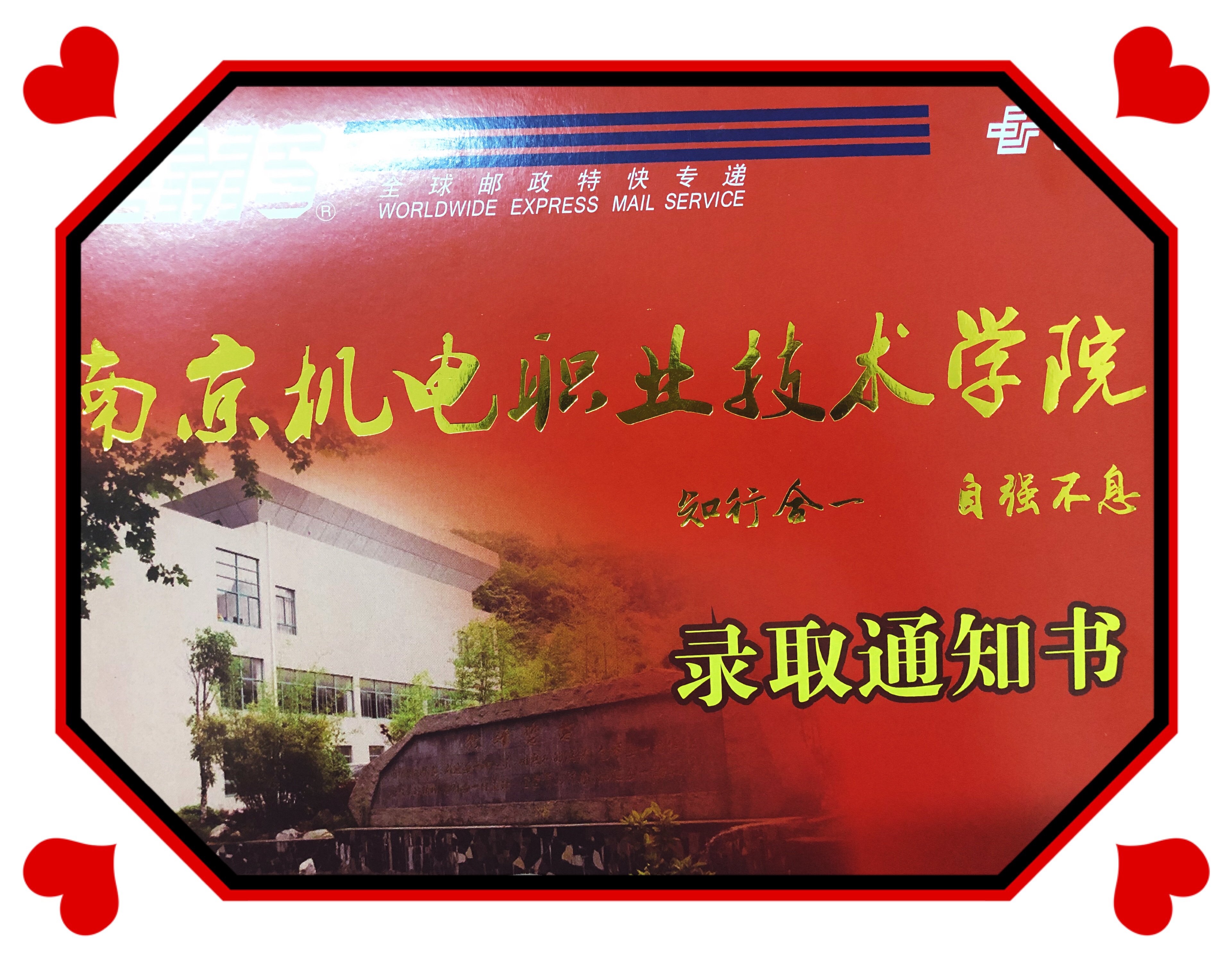 我院2020年高职提前招生批次的新生录取通知书,已于2020年6月17日上午通过中国邮政EMS特快专递形式发出。EMS特快专递内含如下文件:《录取通知书》、《新生入学须知》、《高等学校学生及家庭情况调查表》、工商银行借记卡、定制书签一份。EMS特快专递,江苏省内一般三日内到达。