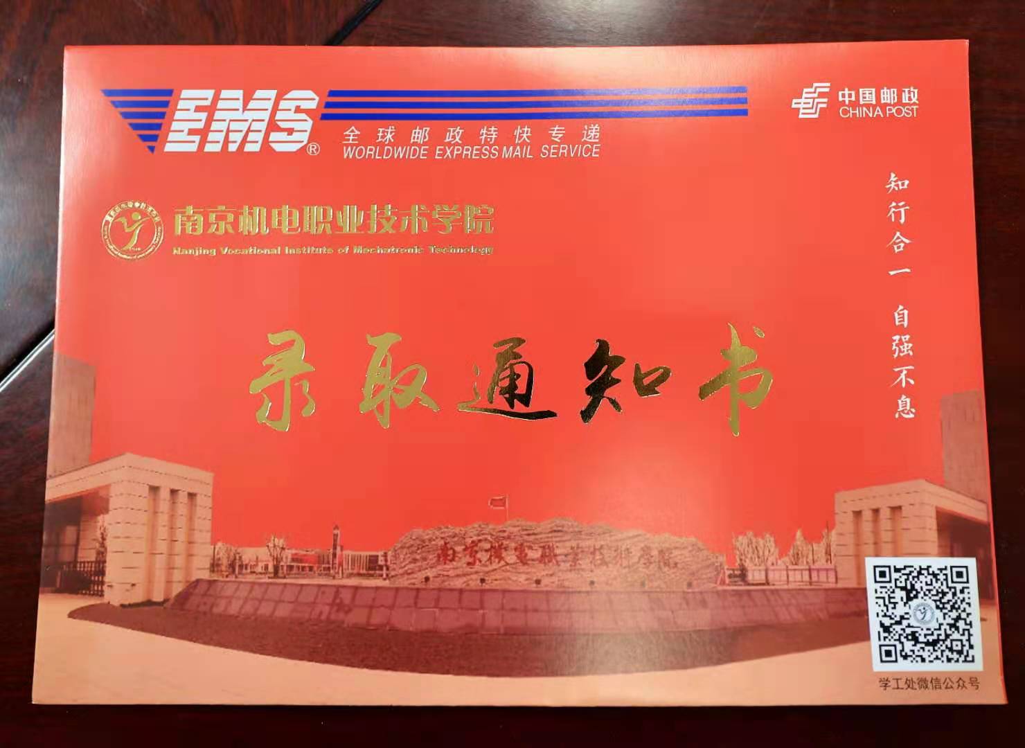 2021年甘肃和青海高考的新生录取通知书,已于2021年8月18日上午通过中国邮政EMS特快专递形式发出。EMS特快专递内含如下文件:《录取通知书》、《入学须知》、《学工处资助管理中心致大学新生的一封信》、《江苏省家庭经济困难学生认定暨国家教育资助申请表》、《江苏省高校本专科学生资助政策简介》、《生源地信用助学贷款申请指南》、《大学新生应征入伍宣传单》、定制书签、缴费流程等材料。 江苏省内一般隔日内到达,外省一般三天内到达。