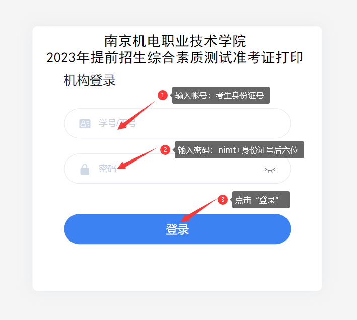 一、电脑浏览器登录网址:https://gnnyz.v.chaoxing.com,输入帐号、密码后登录准考证打印系统。
