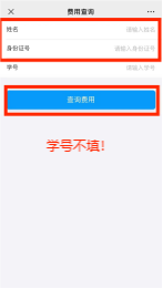 5.在“费用查询”界面,输入考生姓名和身份证号(学号不填),点击“查询费用”,进行缴费。