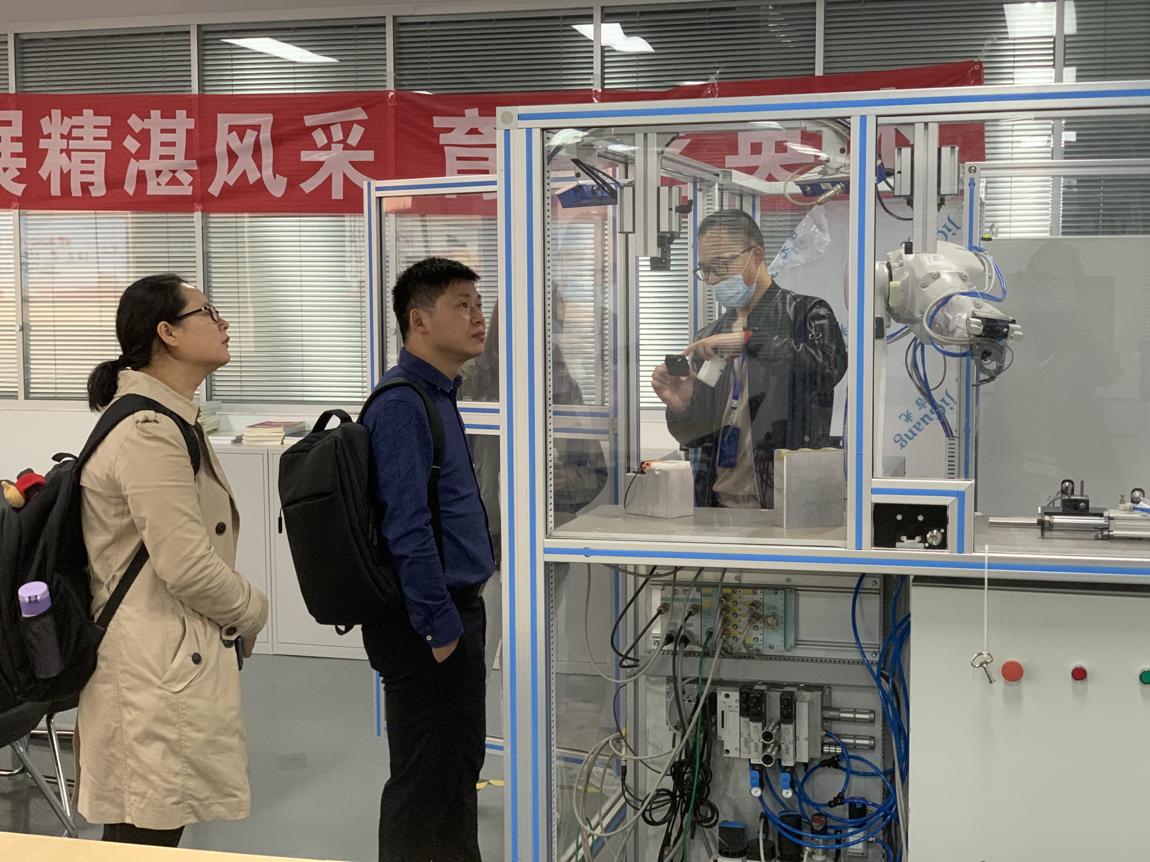 10月26日上午,海康威视科技有限公司总部人力资源总监张文球、高级员工关系经理许渊、上海大众汽车有限公司人力资源主管徐翔等一行人受邀来我院南机电-莱尼机器人学院参观交流。智能制造学院执行院长潘理平、莱尼集团工程师阮畅参加了交流会。