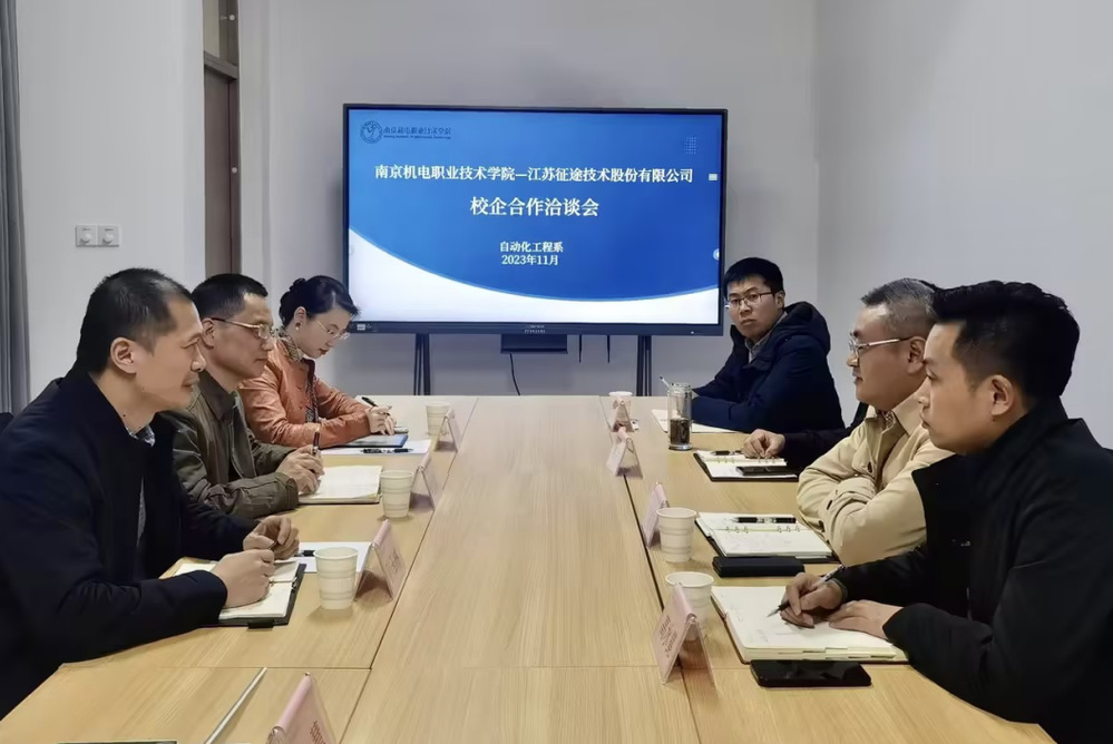 11月16日下午,江苏征途技术股份有限公司执行董事孙玉林、李国峰一行4人到中欧集团官网(中国)官方网站调研,洽谈校企合作。中欧集团官网(中国)官方网站党委委员、副校长刁爱军会见企业代表,自动化工程系副主任顾晟吉、专业教师唐建伟参加座谈会。自动化工程系党支部副书记高水冕主持座谈会。