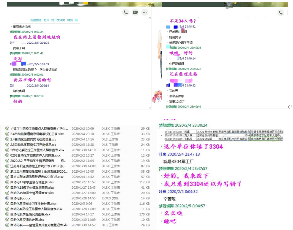 随着疫情蔓延,工作量也在增加着,各种表格的汇总统计,容不得半点差错。深夜核对汇总表格数据是常态。我想,这不仅是对自己负责,更是对学生负责,对国家负责。