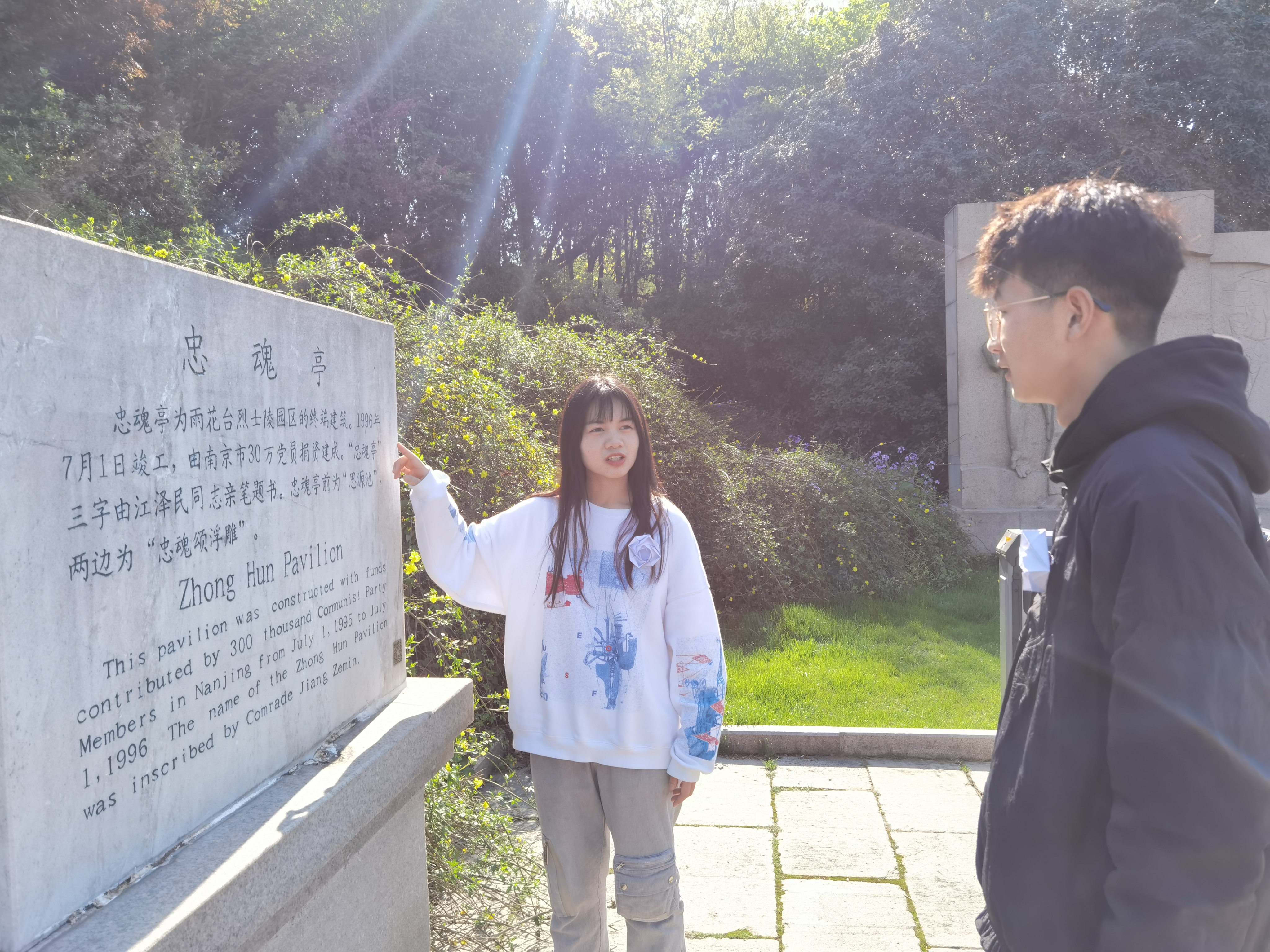 接着,副班长董子瑶为大家介绍忠魂亭的由来和意义,在生动的讲解中大家了解了烈士舍己为人、宁死不屈、永垂不朽的精神,展现了他们大义凛然、临危不惧的烈士风采。