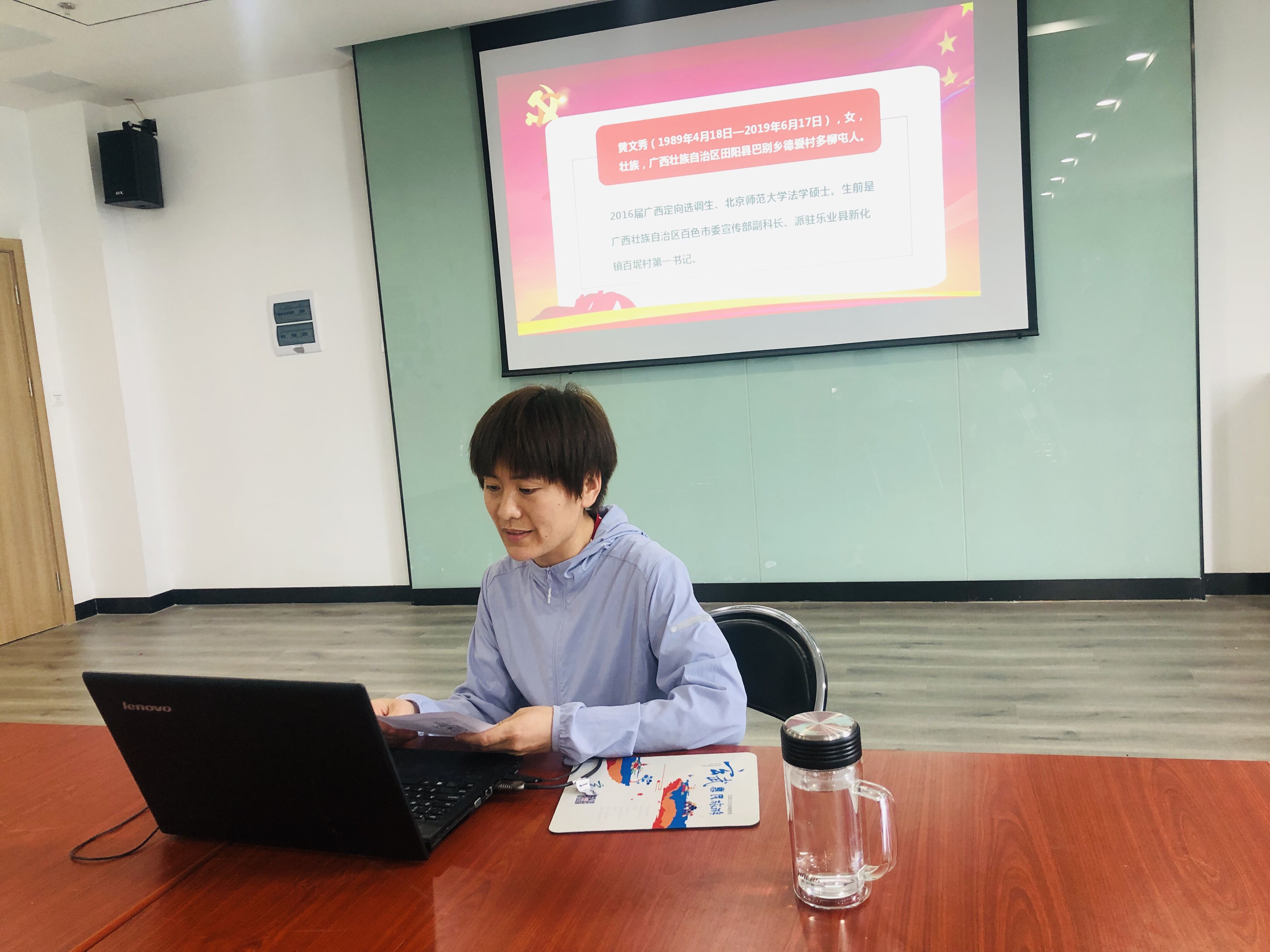 黄文秀同志生前担任百色市乐业县新化镇百坭村第一书记,埋头苦干,带领88户418名贫困群众脱贫,全村贫困发生率下降20%以上。2019年6月17日凌晨,黄文秀同志从百色返回乐业途中遭遇山洪不幸遇难,失去了夏花般璀璨的生命。她始终坚守脱贫攻坚第一线,用实际行动彰显了共产党人的价值追求和奋斗精神。