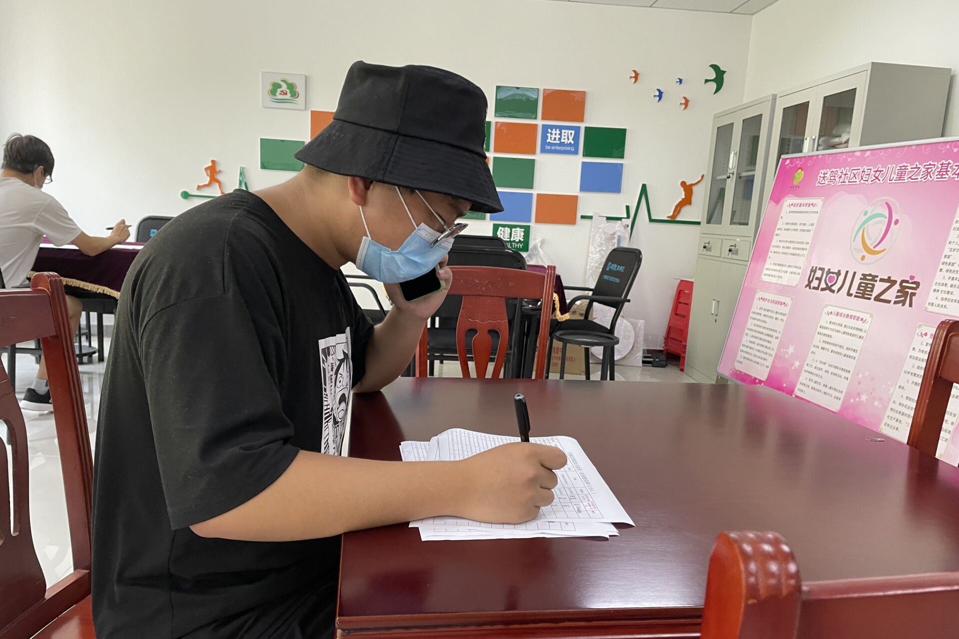 机电一体化技术202班的倪晨在泰州市三太村做志愿者,他负责张贴防疫的宣传海报。天气炎热,他也依旧坚持在岗位上,他说:疫情出现反弹,作为新时代青年,我们应该尽自己的一份力量去做一些对社会有益的事,我加入志愿者的队伍,即便是张贴海报这样简单的工作,只要能为抗疫贡献一份力量,哪怕再微小,也足够了。
