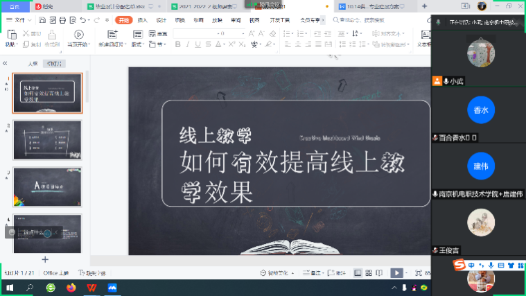 在学院党委和疫情防控领导小组的部署下,我院有序开展线上教学活动。为了切实提高线上授课的教学质量,4月19日下午,供用电技术教研室全体教师在腾讯会议上就疫情期间如何提高线上教学效果开展专题讨论会。