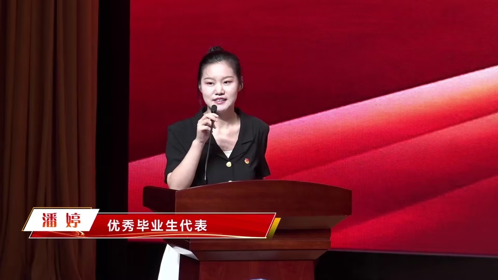 下午一点半,毕业生们到达班级所对应的教室观看毕业典礼的转播,我系2023届毕业生代表潘婷发言,她回忆起在大学的三年时光,青春熠熠生辉。她结合自身经历与同学们进行分享,在学习专业课知识的基础上,让自己处于接纳状态,保持不断学习的能力;努力成长为有理想、敢担当、能吃苦、肯奋斗的新时代好青年。