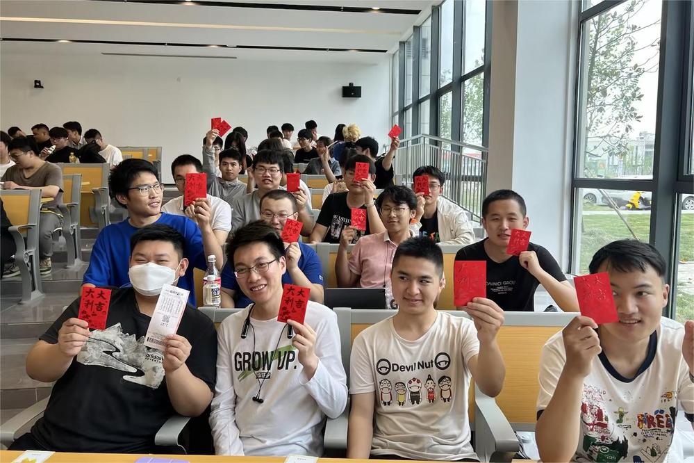 辅导员殷翠松给毕业生们准备了“抽红包”环节,里面隐藏了老师对同学们各种各样的祝福。