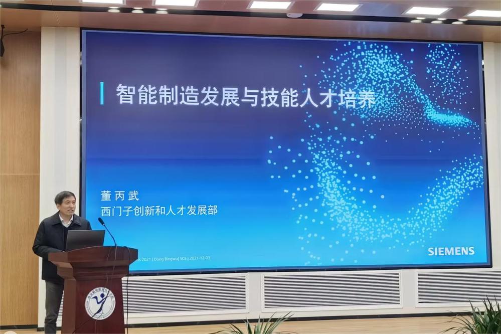 为更好地对接企业行业,准确定位技术技能型人才培养的方向,促进专业建设,提升人才培养质量,3月28日上午,自动化工程系特邀西门子(中国)有限公司领导、专家来校举行“西门子-南京机电L0授权认证中心签约揭牌仪式暨西门子L0教师认证结业仪式”,听取西门子创新与人才发展部市场拓展总监董丙武的就业指导报告。学校党委委员、副校长刁爱军,科研及校企合作处处长李木香,自动化工程系主任张海红、副主任顾晟吉等领导出席本次活动。我系西门子首批L0认证教师和2022级全体学员参加本次活动。