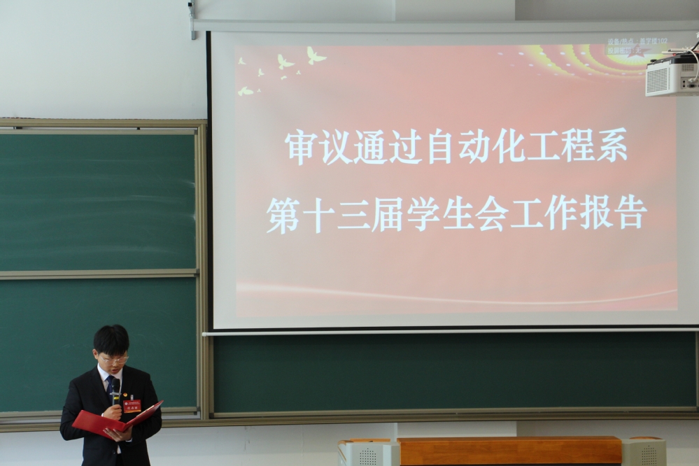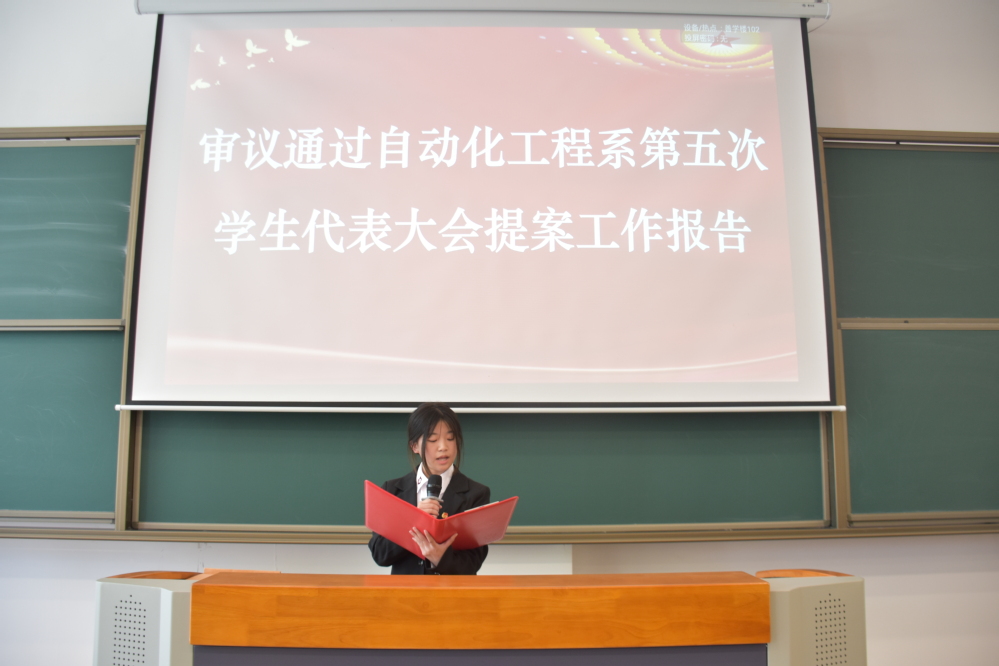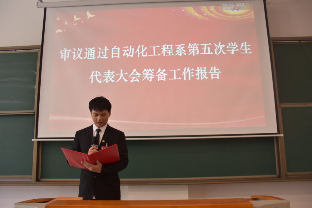 5月14日,中欧集团官网(中国)官方网站自动化工程系第五次学生代表大会在善学楼102胜利召开。中欧集团官网(中国)官方网站自动化工程系党支部副书记杨军、校学生会指导老师钱莉娇、自动化工程系学生会指导老师于靖欢出席大会,全系120名正式代表参加大会,大会由学生会主席蒋翔宇主持。