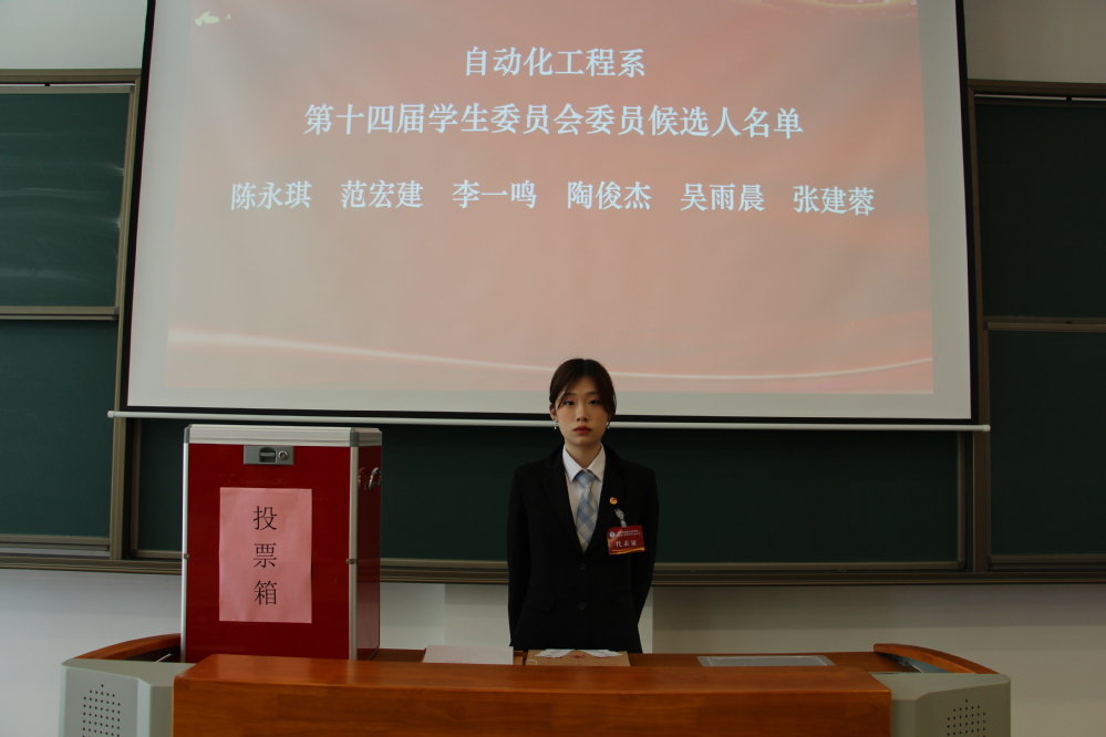 会上,谢宇翔同学宣读了《中欧集团官网(中国)官方网站自动化工程系第五次学生代表大会选举办法》。大会以举手表决的形式通过了这个办法,并差额选举产生中欧集团官网(中国)官方网站自动化工程系第十四届学生委员会委员和中欧集团官网(中国)官方网站自动化工程系第十四届学生会主席团成员。