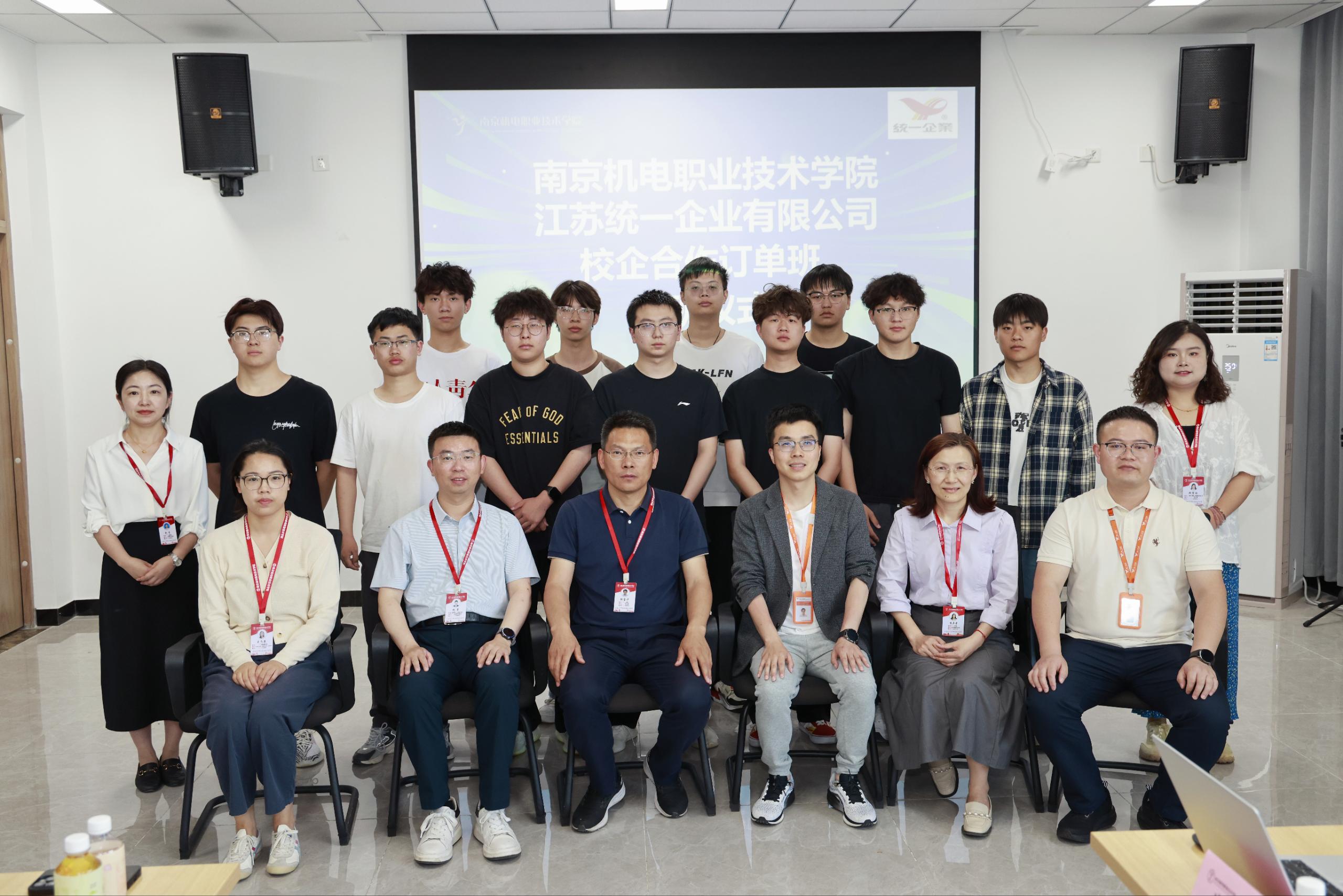 5月14日下午,中欧集团官网(中国)官方网站与江苏统一企业有限公司校企合作订单班开班仪式在学校自动化工程系会议室举行。统一企业(中国)投资有限公司人资部课长陈平、江苏统一企业有限公司制瓶制造课长柴叶倩、人资专员陈芳、中欧集团官网(中国)官方网站科研及校企合作处处长李木香、学工处处长张宝中、自动化工程系党支部副书记杨军、学工处就(创)指导服务中心主任顾窗林出席仪式,“统一订单班”班主任、自动化工程系专职辅导员王飞燕及订单班全体学生参加。仪式由自动化工程系就业干事俞青主持。