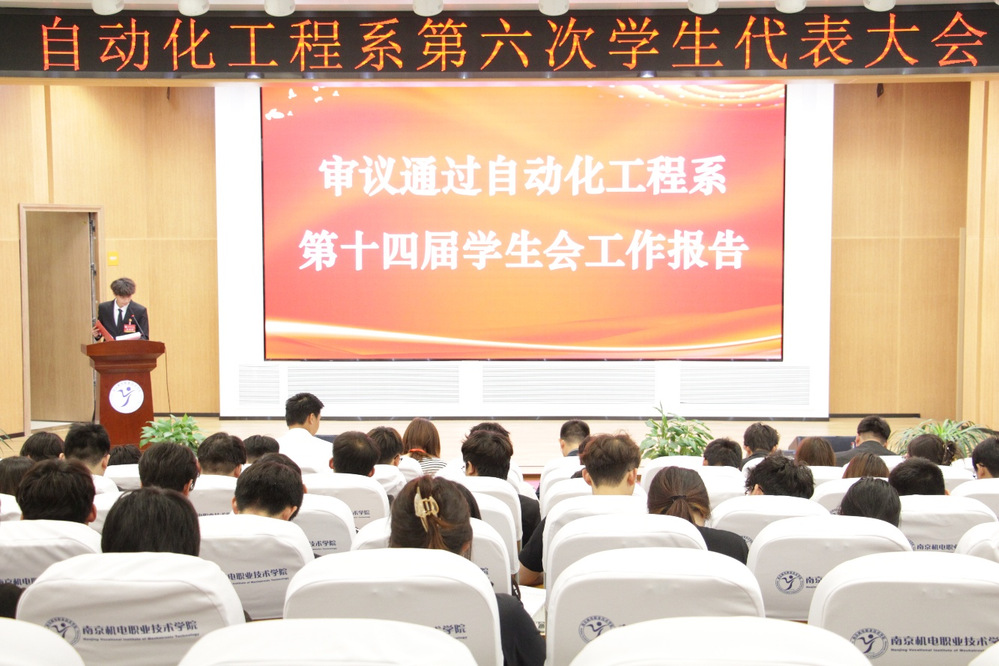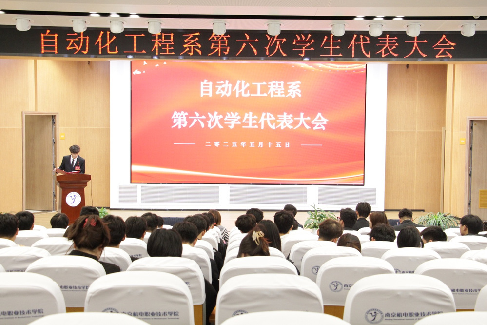 5月15日,自动化工程系第六次学生代表大会在乐学楼102报告厅召开,自动化工程系党支部副书记杨军、系学生会指导老师于靖欢和全系120名学生代表出席,大会由自动化工程系学生会主席金旺龙主持。