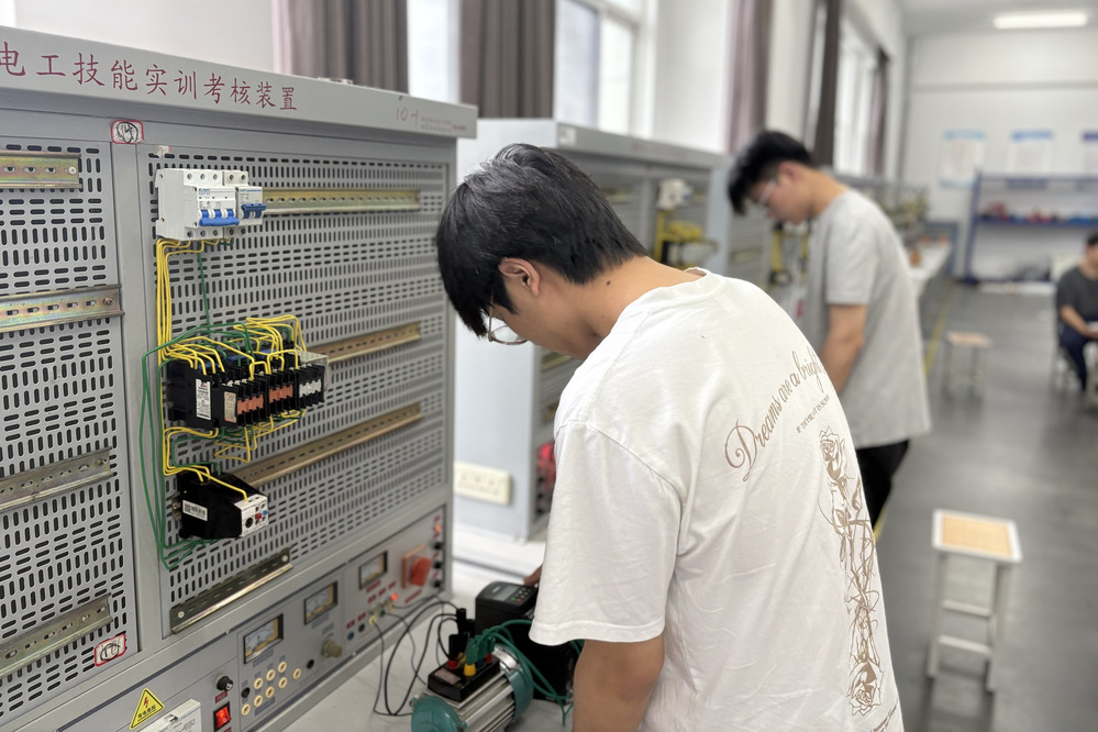 6月8日,学校2025年上半年电工高级工职业技能等级认定工作圆满完成,自动化工程系和机械工程系近100名学生参加考评。认定工作分为理论和实操两个环节,为保证考试顺利进行,学校培训处在制定考务工作流程、安排布置考场、选派考评员等方面进行了周密部署和安排,确保认定工作的公正、公平、有序。