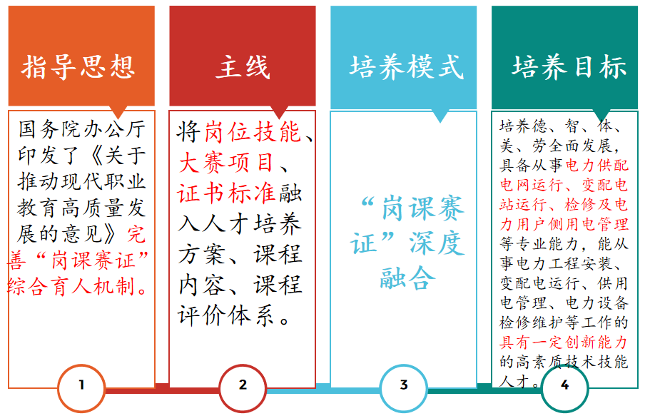 培养德、智、体、美、劳全面发展,掌握电力系统分析、继电保护、工厂供配电等基本理论和基本方法,具备从事电力供配电网运行、变配电站运行、检修及电力用户侧用电管理等专业能力,具有批判性思维、团队协作、创新实践等职业核心能力,能从事电力工程安装、变配电运行、供用电管理、电力设备检修维护等工作,具有一定创新能力的高素质技术技能人才。